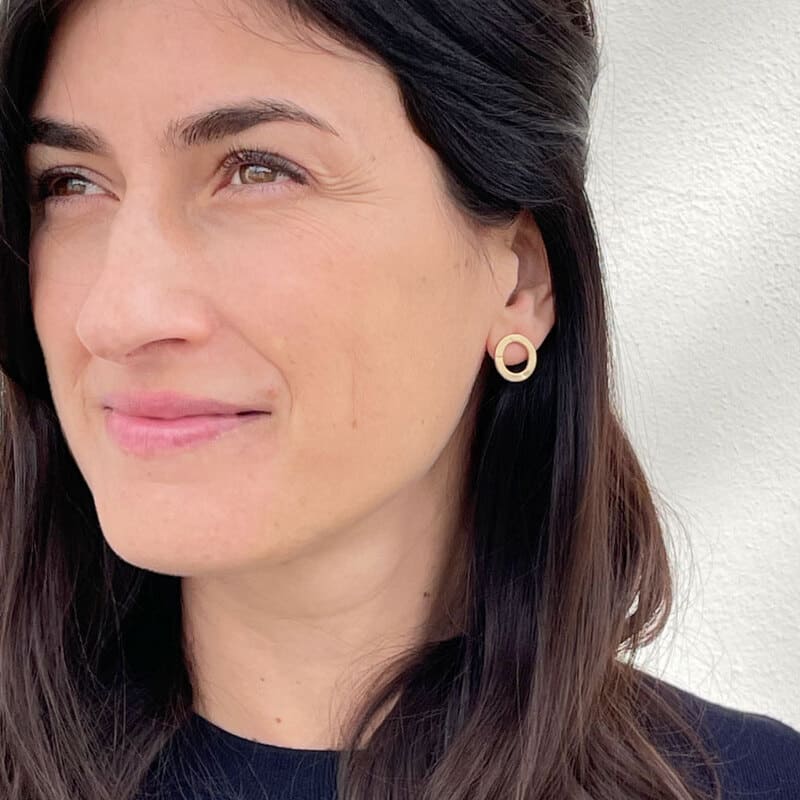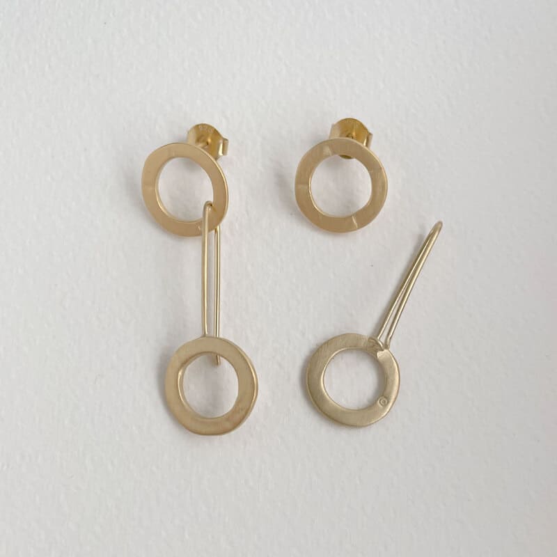 These versatile and original gold earrings can be worn in two different ways. Hand hammered style, these matte earrings are perfect to wear day and night and change positions according to your look. Definitely a must if you love contemporary jewelry design.