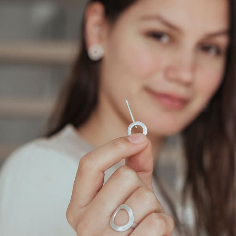 These versatile and original silver earrings can be worn in two different ways. Hand hammered style, these matte earrings are perfect to wear day and night and change positions according to your look. Definitely a Must-Have if you love contemporary jewelry design.