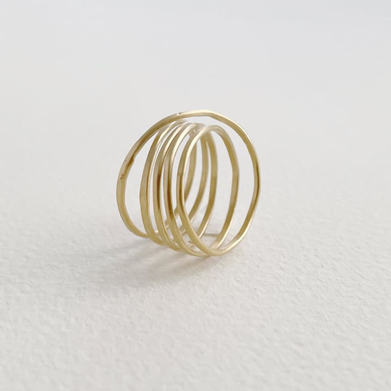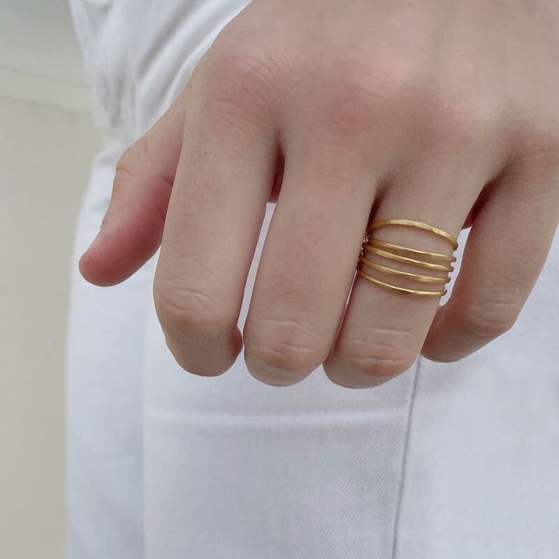 This hammered style five strap gold ring that makes each ring unique is such a timeless jewelry design.