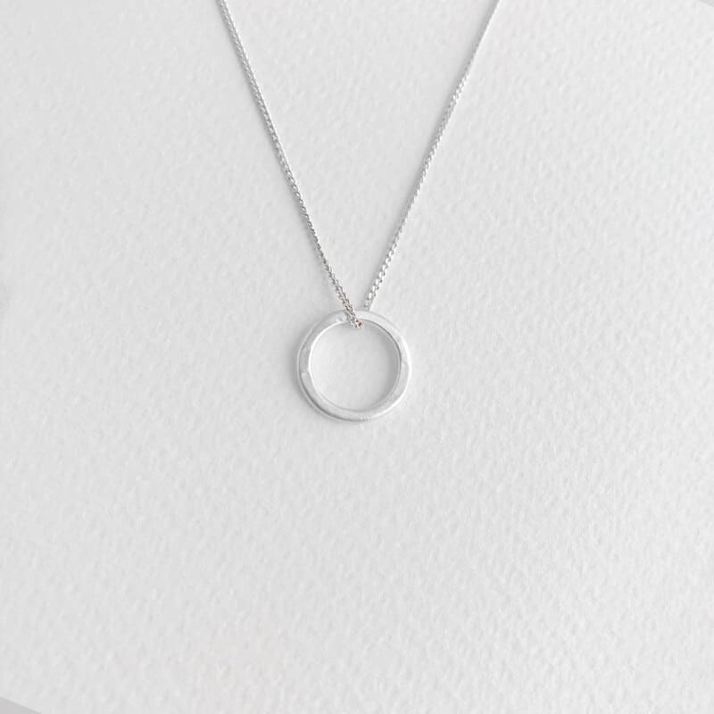 This hammered silver circle necklace is perfect if you like simple jewelry for your every day look. Perfect Design for layering with other Sui Cala Necklaces