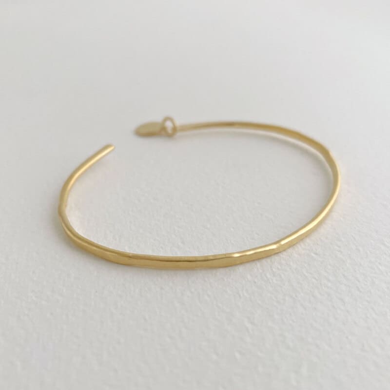 A delicate and timeless gold hammered open-ended bangle. Each piece is unique. Light and Comfy Bracelet, perfect for layering with other Susi Cala minimal bracelets.