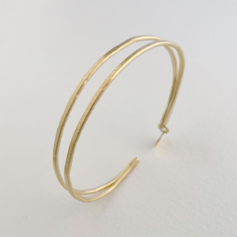 This hammered two-strips gold bangle is a must have for minimalist jewelry lovers. Comfortable open-ended bangle fits in many wrist as it is adjustable. It would be the Perfect Gift!