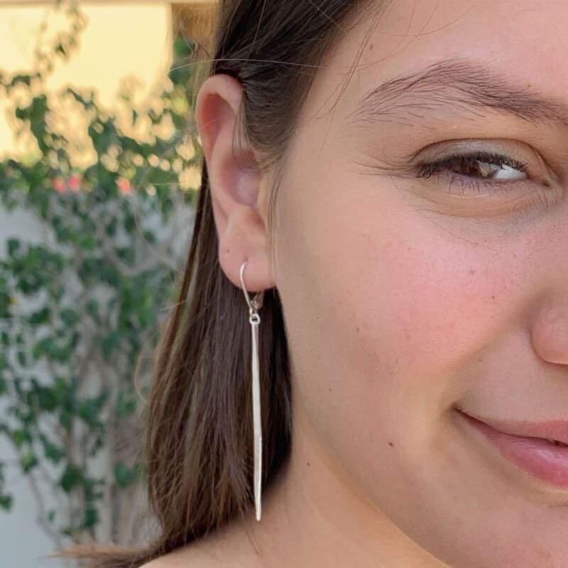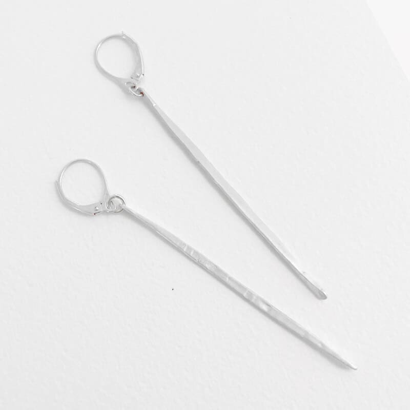These long hammered silver stick earrings have a very nice swing when you wear them. Minimalist, stylized and very light earrings, they will give a special touch to your daily looks.