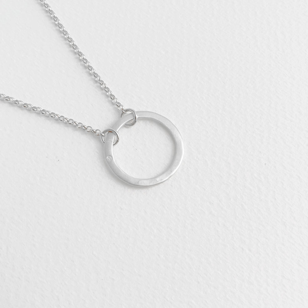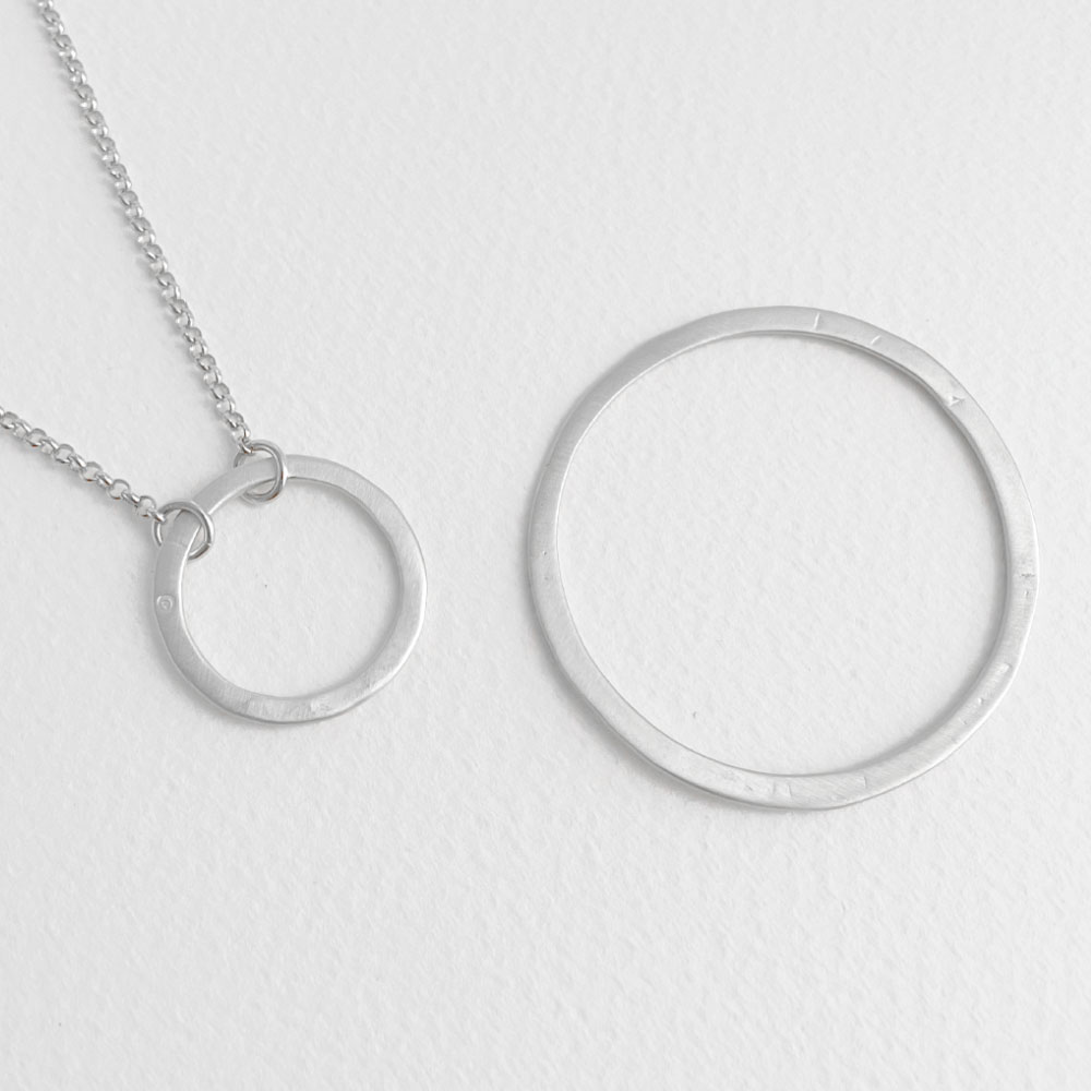 One of our best-sellers, this silver versatile necklace can be worn in different ways. You can take off the big circle and also you can wear it as a bracelet.