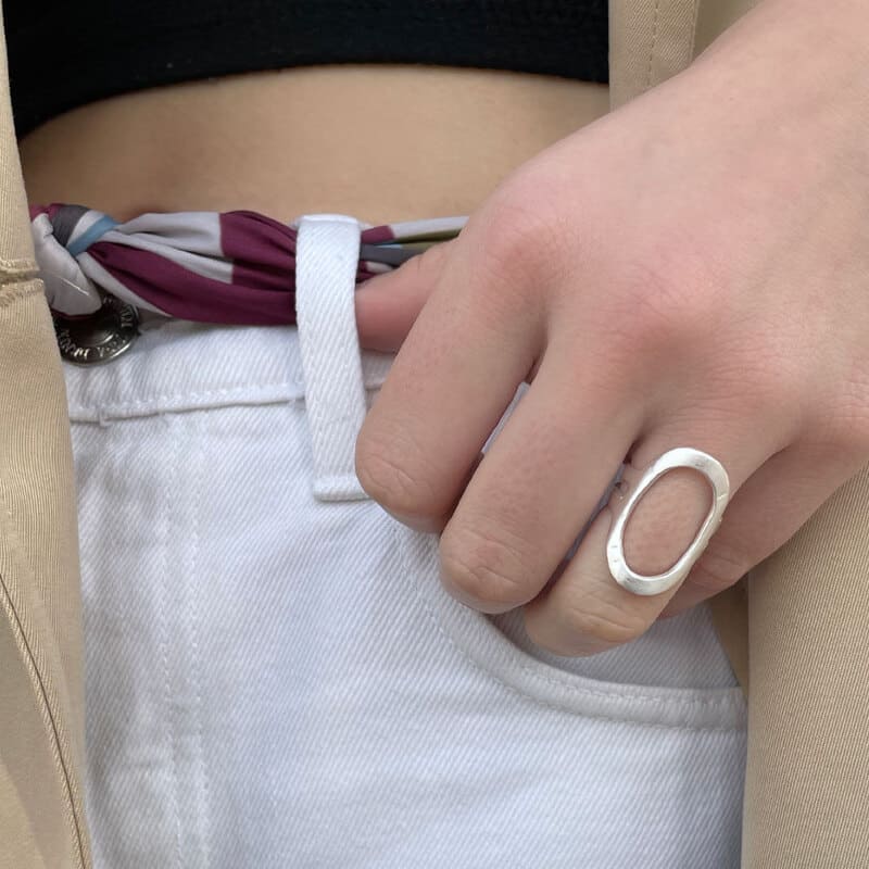 This silver oval big ring is very comfy and lightweight. Hammered style, it is a perfect jewelry gift as it is an adjustable ring that fits to many sizes.