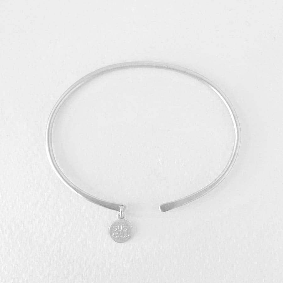 This beautiful bangle is a timeless accessory. The perfect silver bracelet to mix and match with other Susi Cala Bracelets. With the open end, it can sizes many wrists.