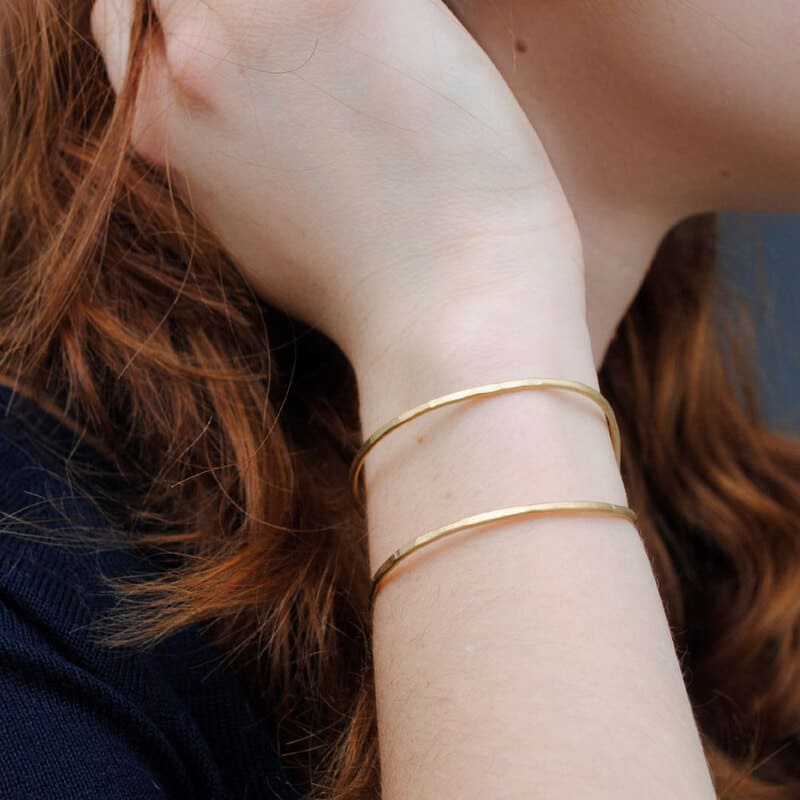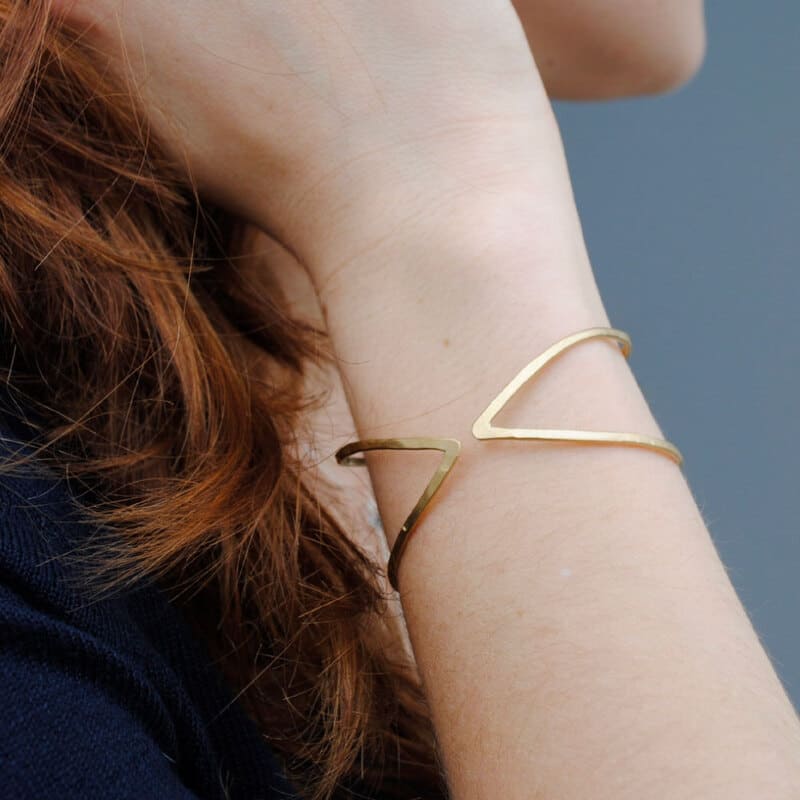 This rigid matte gold bracelet is lightweight and versatile since you can wear it in two different positions. It has an original and contemporary design, the perfect gift as it is an adjustable bracelet.