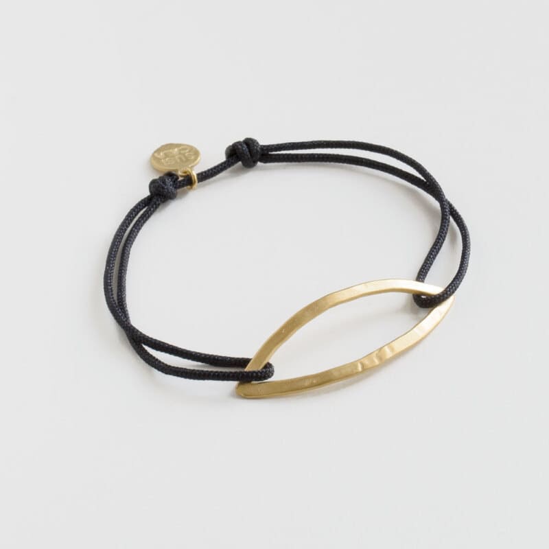 This hammered gold leaf-shaped nylon bracelet is a perfect minimalist jewel for your day-to-day. It looks very good on its own and can be the perfect gift since being an adjustable bracelet takes various wrist sizes. Choose between several colors and get the Susi Cala Look.