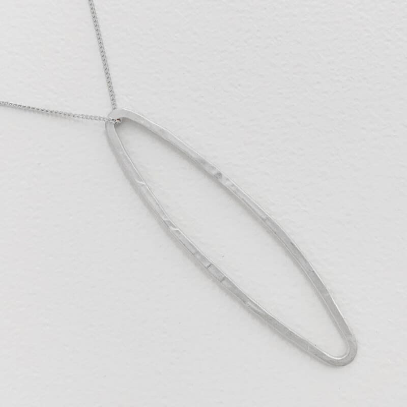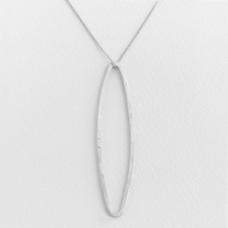 This large hammered oval is bold and beautiful! The perfect piece to wear to the office, or a night on the town, this necklace is lightweight, comfortable and easy to wear.