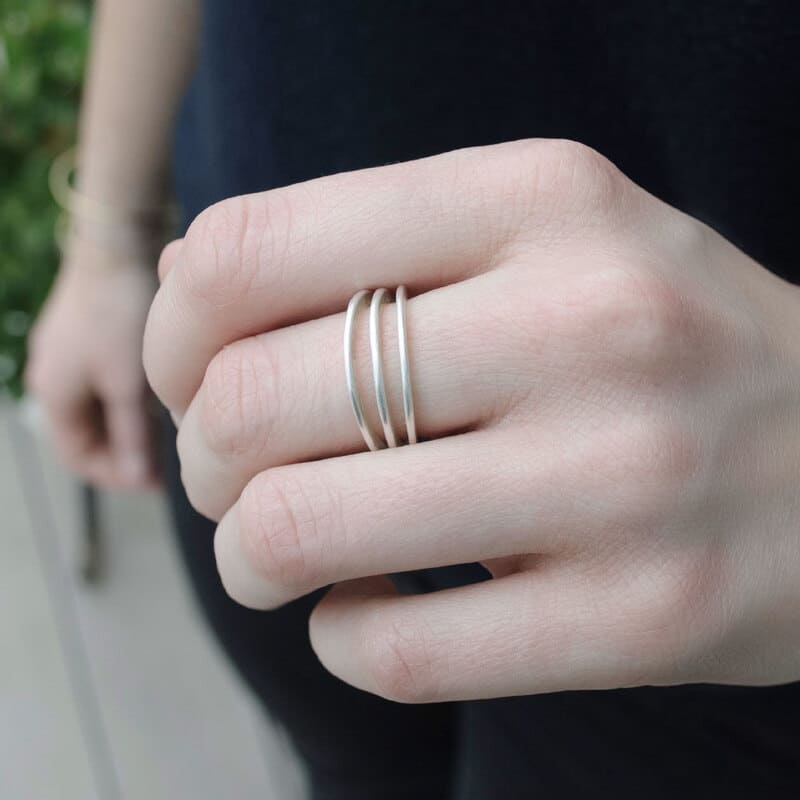 This three-strips silver ring is very comfortable. Beautiful matte ring, the perfect timeless ring for your day-to-day look. You can wear it alone or combine it with other Susi Cala rings.