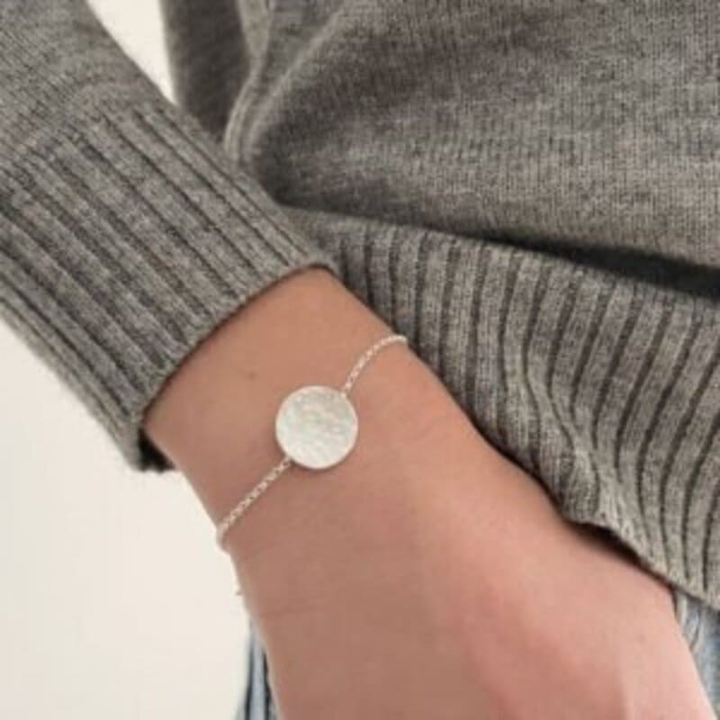 This silver chain bracelet with hammered texture simulating the full moon, is adjustable and comfortable. You can combine it with other Susi Cala’s bracelets or just wear it by itself. Let yourself be influenced by the moon by wearing the Moon Bracelet!