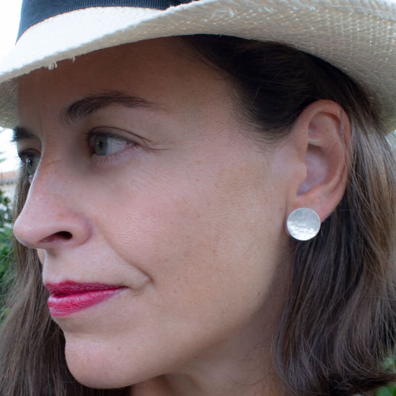 These silver circle earrings look like the full moon as they have a hammered texture. Let yourself be influenced by the moon by wearing the Moon Earrings!