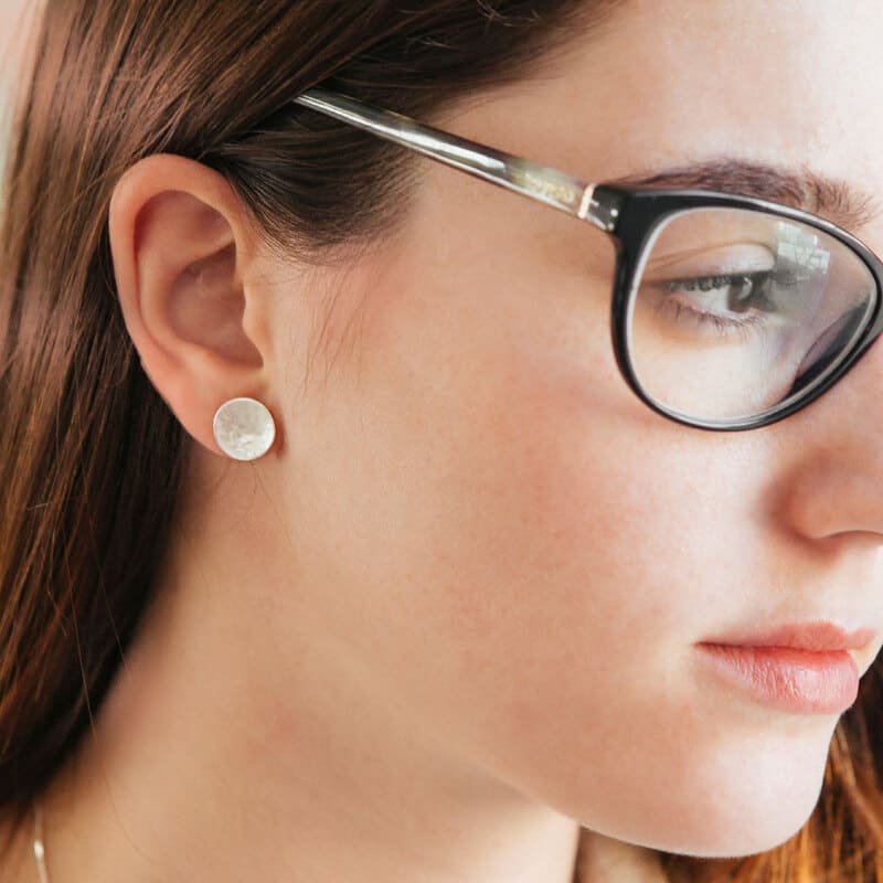 These little silver circle earrings look like the full moon as they have a hammered texture. Let yourself be influenced by the moon by wearing the Moon Earrings!