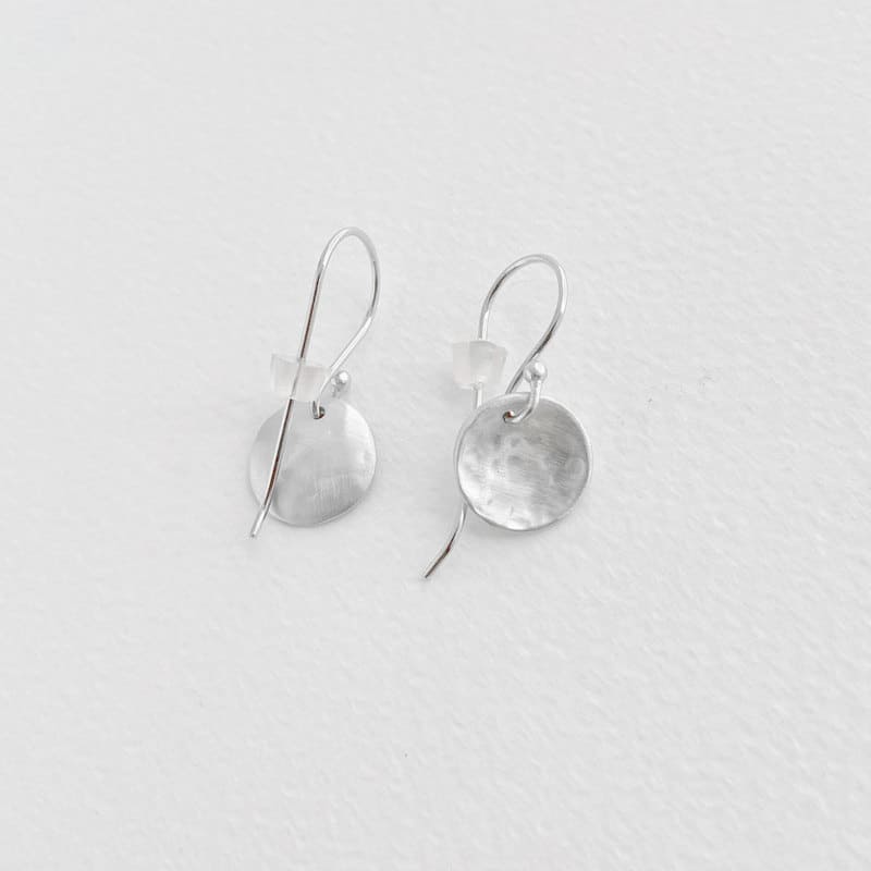 These little silver circle earrings look like the full moon as they have a hammered texture. They have a smooth movement and will fit you very well. Let yourself be influenced by the moon by wearing the Moon Earrings!