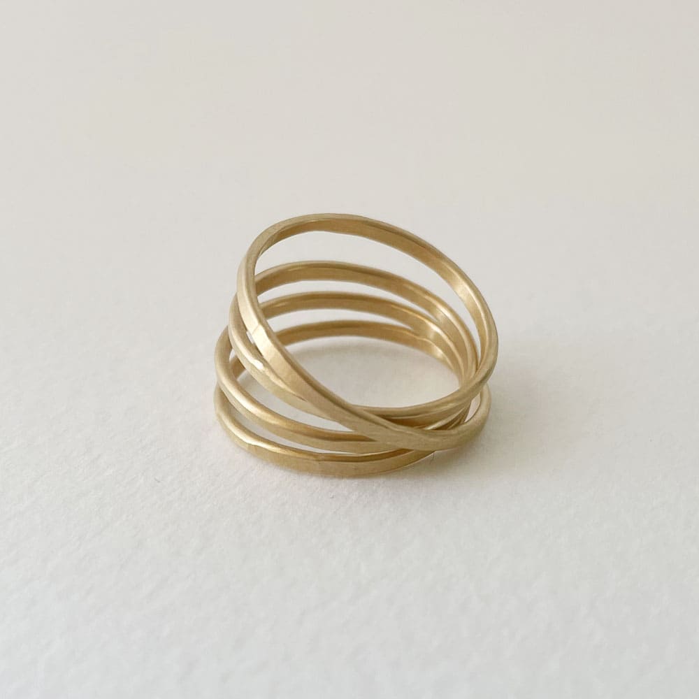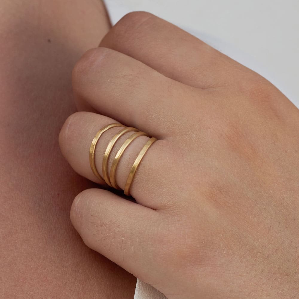 Bold but clean, this wide gold-plated ring is hand-hammered in Spain with a softly sculpted finish. A statement piece with everyday comfort, it brings a minimalist edge to any jewelry lineup.