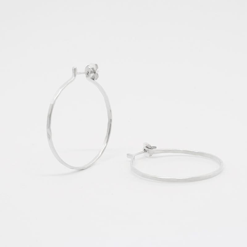 These original silver hoop earrings are hammered one by one, with a matte finish, each earring is unique. These minimalist hoop earrings are perfect for you if your hole is a little ripped because they hide it. A classic reinvented with the style of Susi Cala.