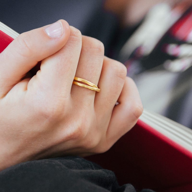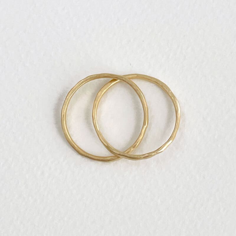 This two linked circles gold ring is in the purest Susi Cala style. You can play with this minimal ring because it has a nice movement. Hammered one by one, each ring is unique.