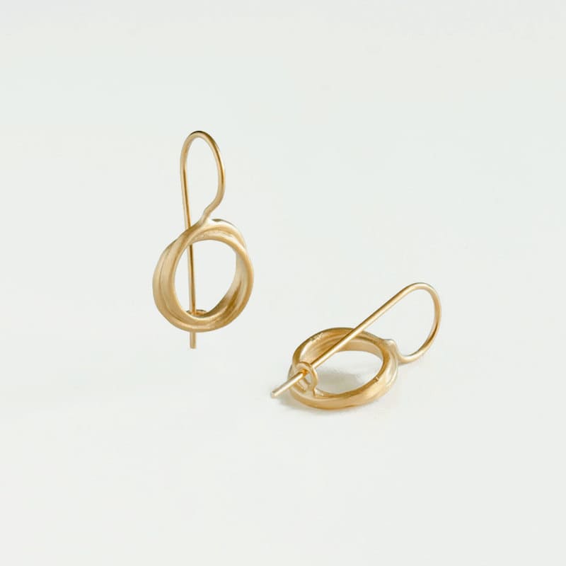 These gold circle earrings have an original design. Comfortable earrings to wear all day.