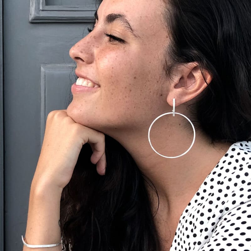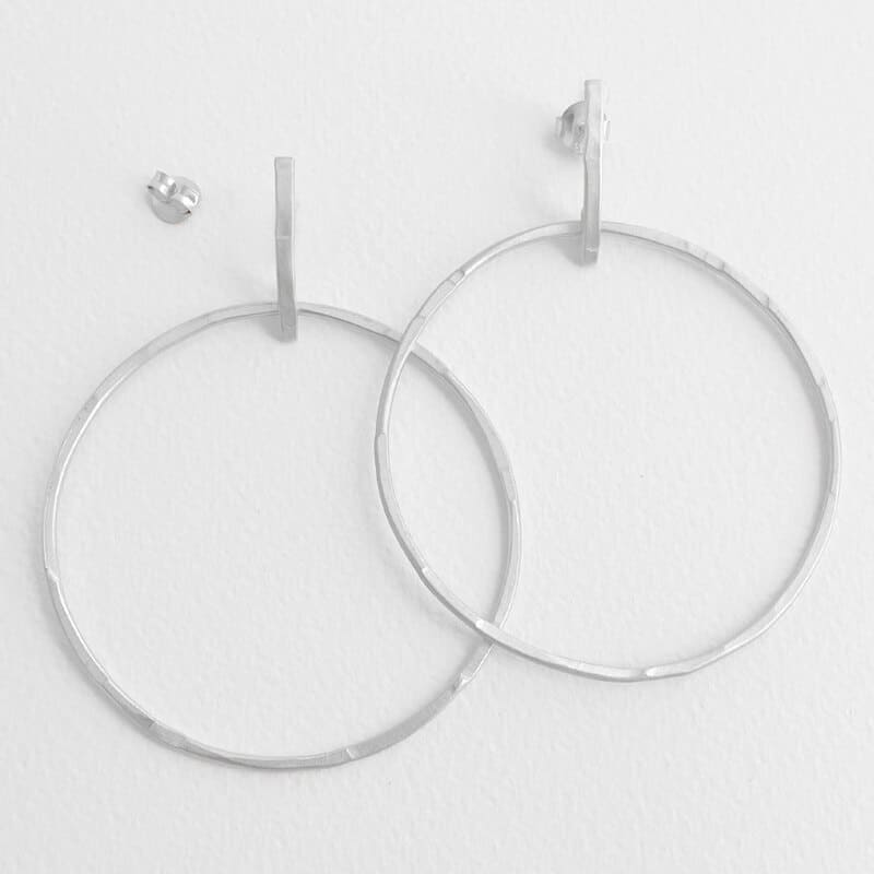 These silver and original big circle earrings are very light despite their large size. Handmade with a hammer one by one, they have a beautiful balance and will be one of your most popular earrings in your jewelry box.