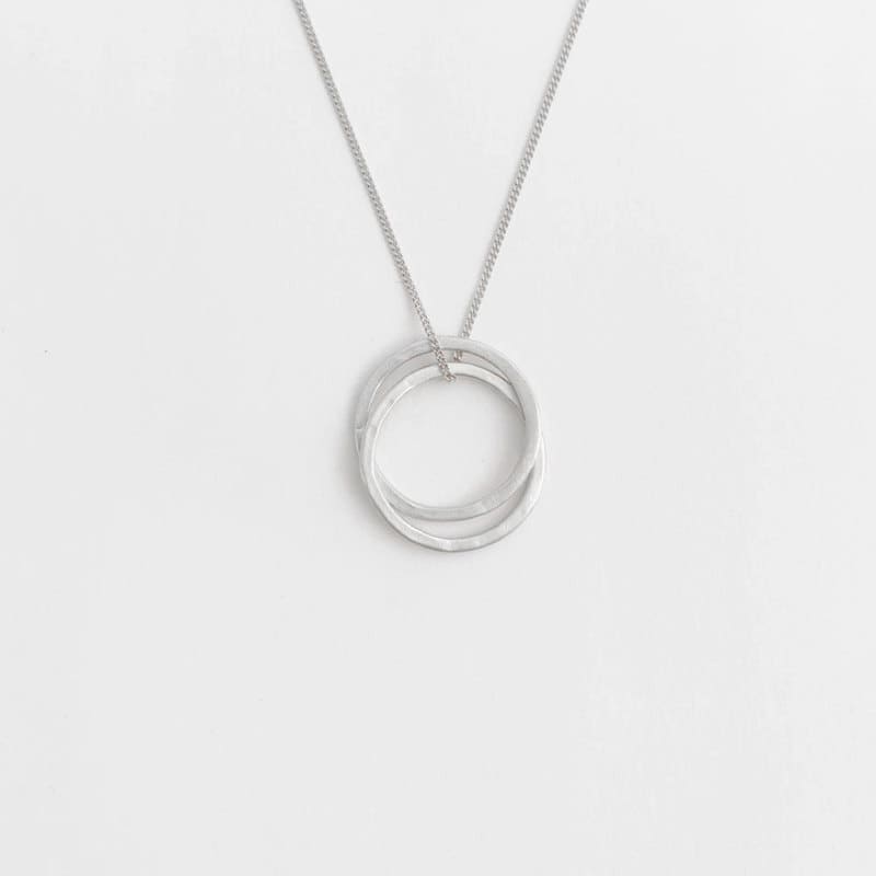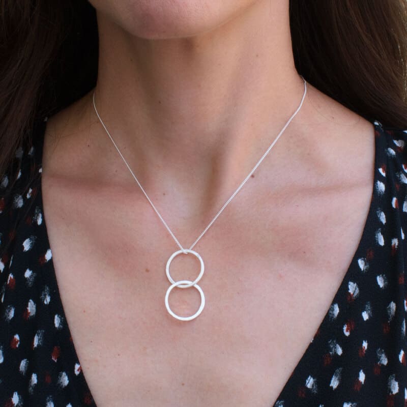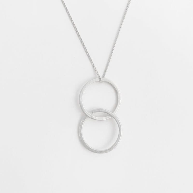 This versatile double circle silver pendant has two positions, find your favorite one. This hammered necklace will become one of your Every-Day Essentials.