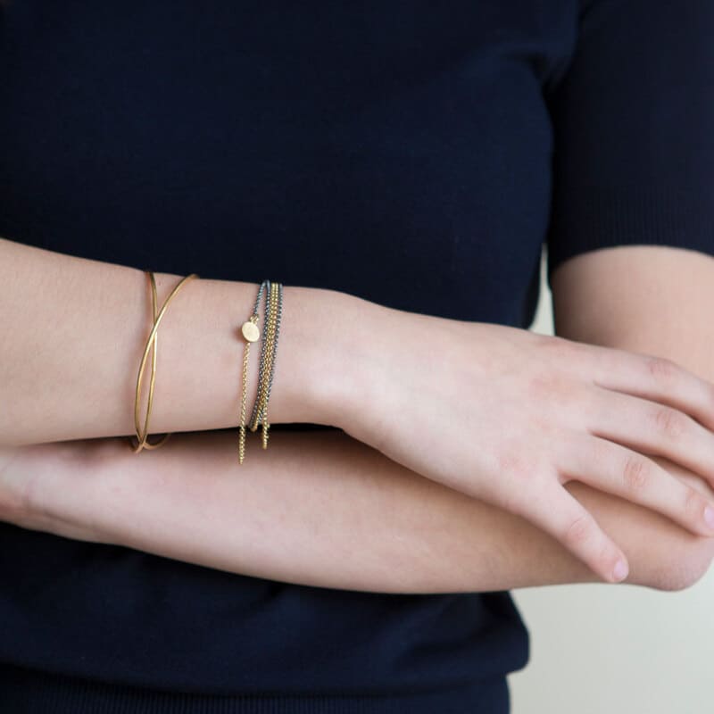 This spectacular and versatile Gold Ruthenium Necklace will not leave you indifferent. With two big circles this necklace is the most versatile jewel of Susi Cala. You can wear it in many different positions as a long neckalce, short necklace or as a bracelet. Find your favourite one!