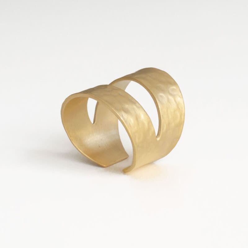 This adjustable original gold ring, is big but lightweight. Inspired by the Moon as it has a hammered texture. The perfect jewelry gift as it is an adjustable ring and fits many sizes.
