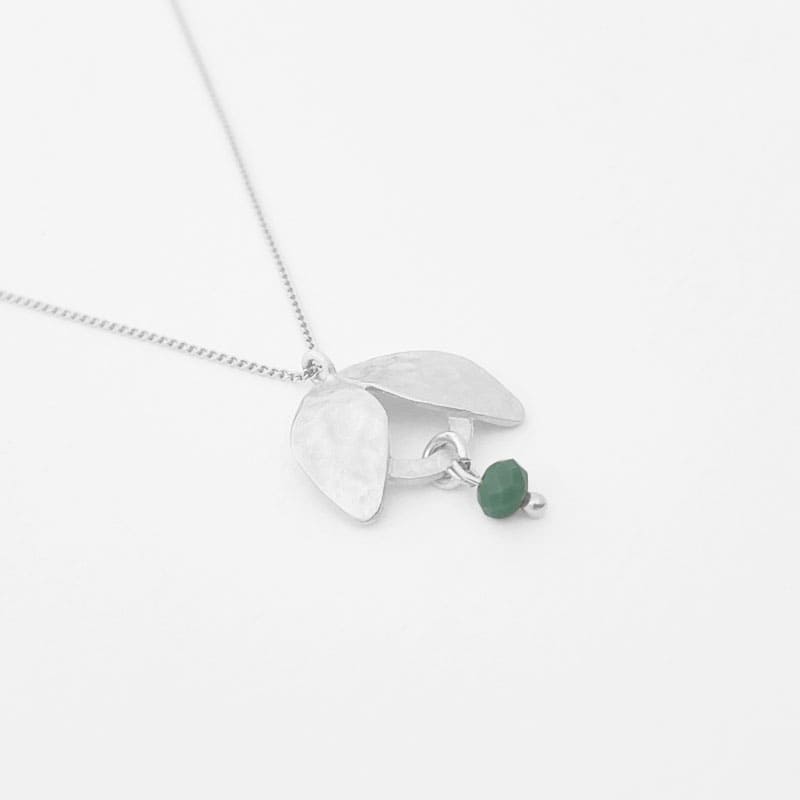 Add a touch of color to your everyday look with this eye-catching color pendant! Hand hammered silver leaves combined with a Swarovski colored crystal create a look that is beautiful and totally unique!